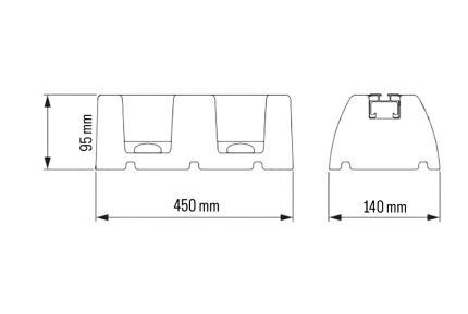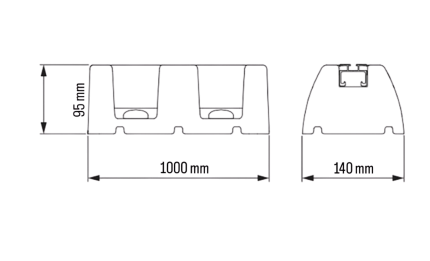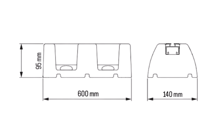 Tecnosystemi SBR EXTREME-20 600 rubber vibration-damping rubber foot mount with aluminium profile (SCD500242) — strong and weatherproof floor support for air conditioner outdoor units, VRV/VRF systems, heat pump outdoor units, and electrical or pipe channel installations. 95x140x600mm, maximum load capacity per foot: 500 kg.