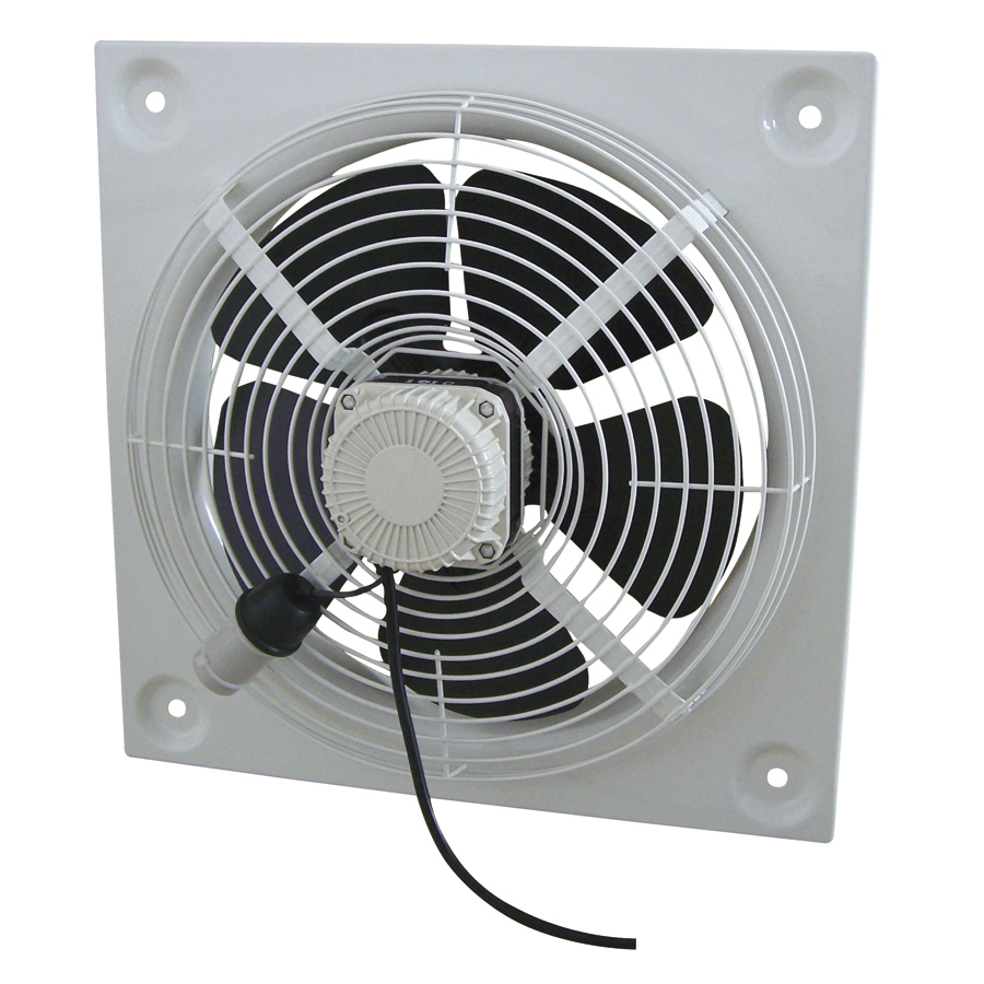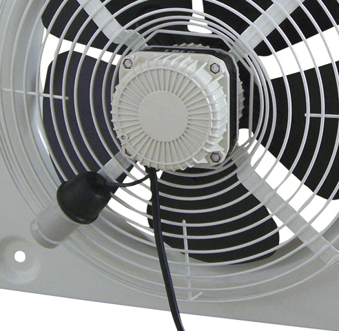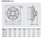 The HXM plate mounted axial flow fans are manufactured from pressed galvanised steel protected from corrosion by a beige epoxy-polyester paint finish. HXM models include impellers manufactured from aluminium sheet (HXM-200 to HXM-350) or steel sheet (HXM-400), finished with black polyester paint. All models include a steel finger proof guard as standard mounted to the inlet side of the fan.